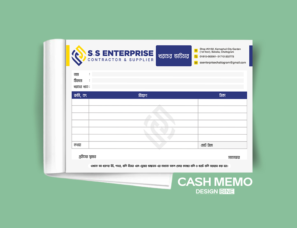 / Cash Memo Bangla, দোকানের মেমো ডিজাইন