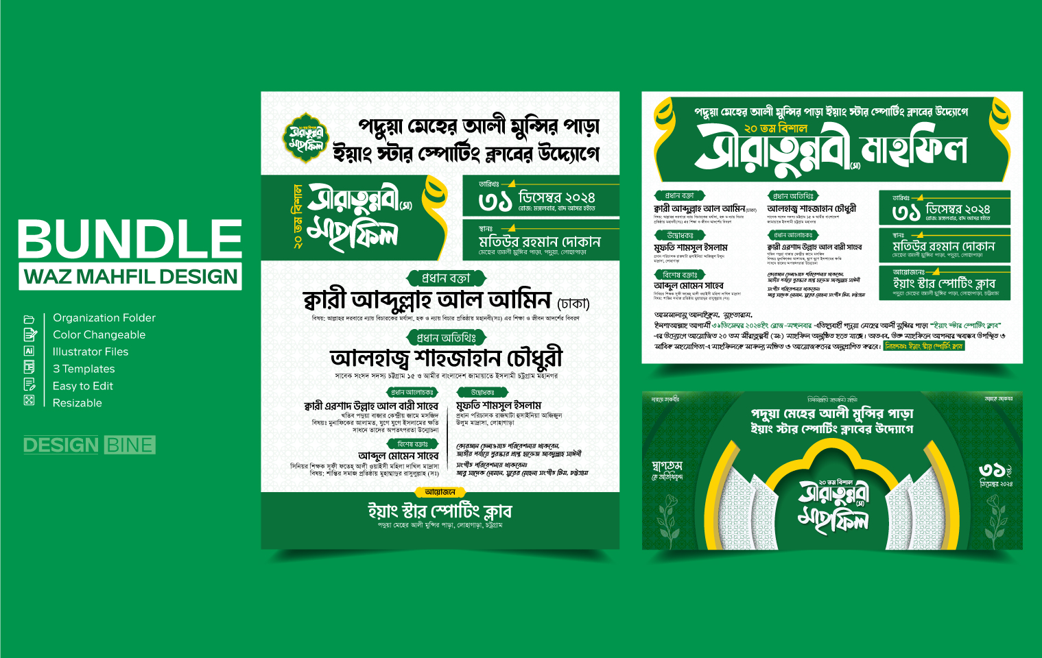 Waz Mahfil Poster | Banner | Dawat Nama Card Bundle